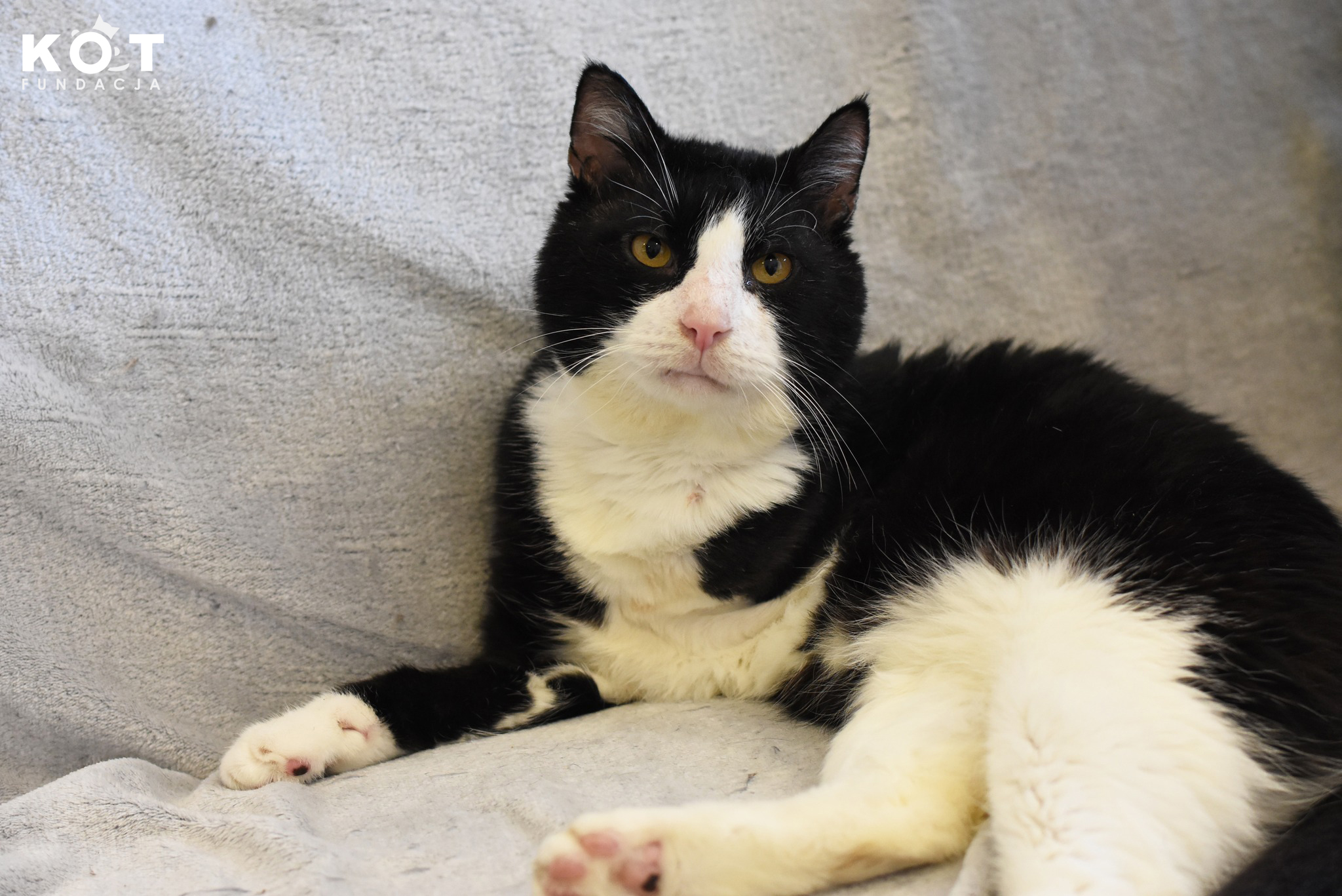 Chłopak przeszedł u nas piękną przemianę. Jest dorosłym, wspaniałym, towarzyskim kocurem, który niestety nie cieszy się idealnym zdrowiem. Trafił do nas z poważną raną i zakażeniem na plecach.