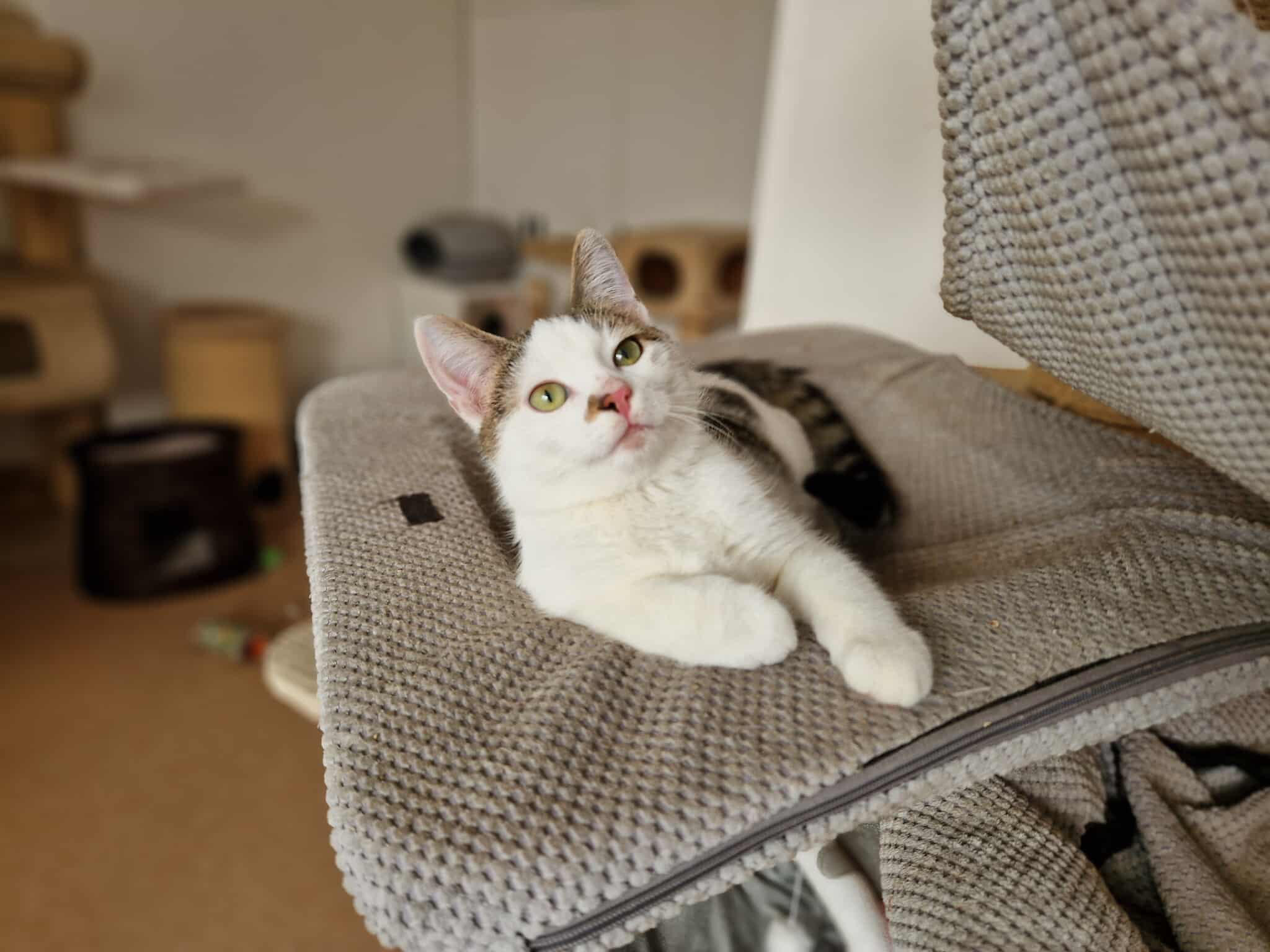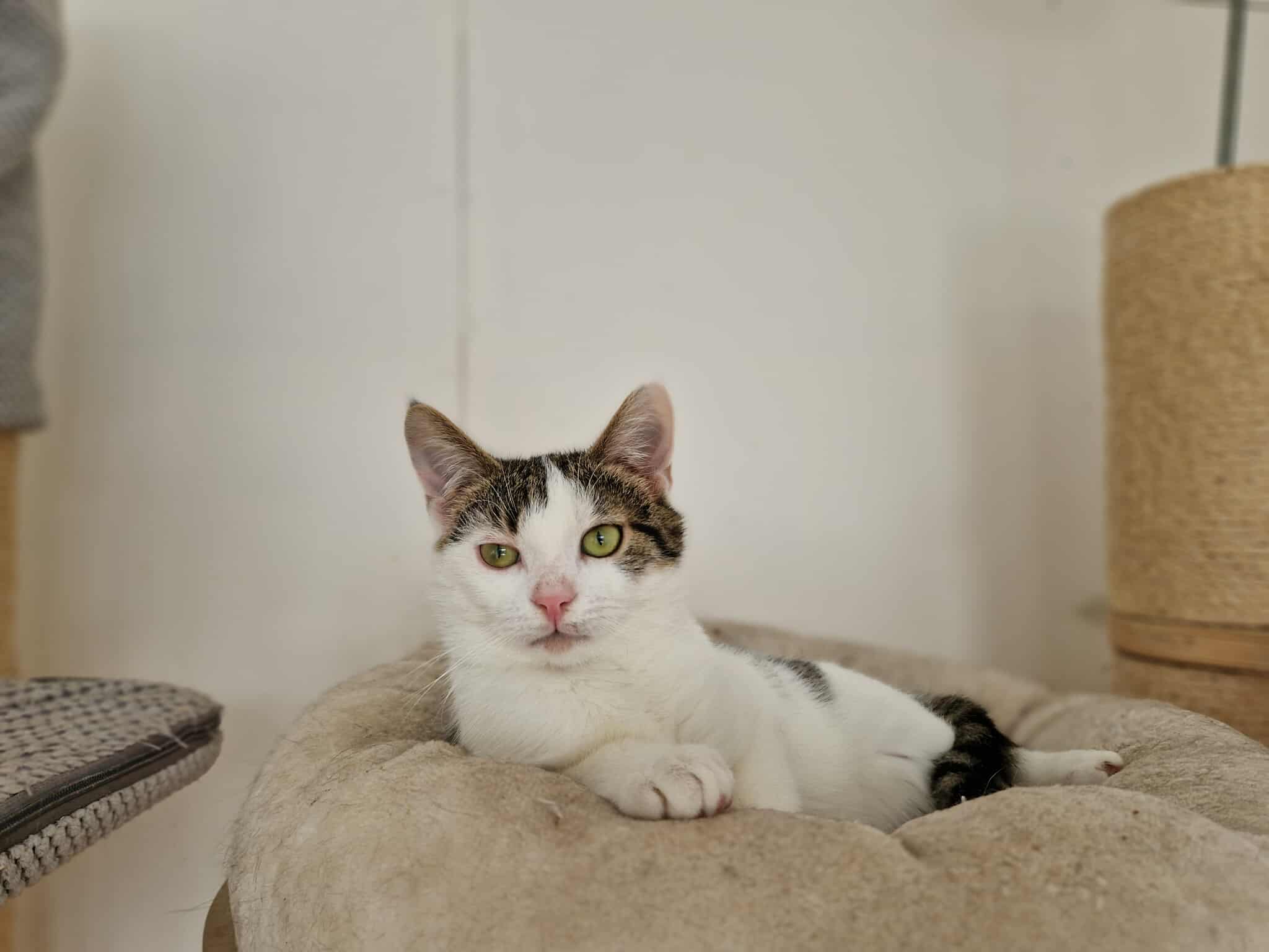 Kotka potrzebuje domu stabilnego i spokojnego, a przede wszystkim cierpliwego i otwartego na pracę nad relacją z nieśmiałym kotem.