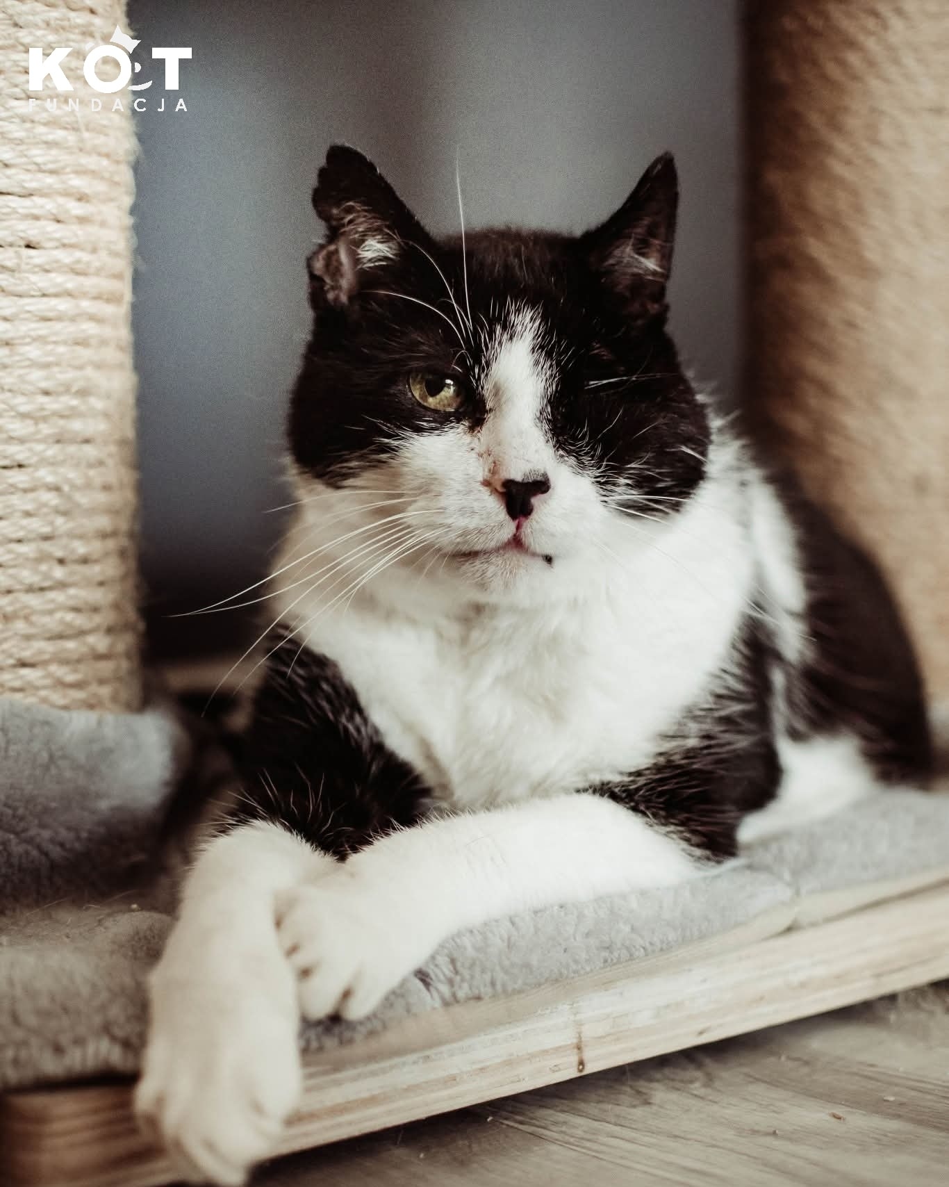 Cyklopek był starszym, bardzo miłym i miziastym kocurem, miał chore nerki. Trafił do nas głównie z powodu złego apetytu – nie było tu niespodzianek, konieczna była ekstrakcja zębów. Kocur po zabiegu odzyskał humor i witalność.