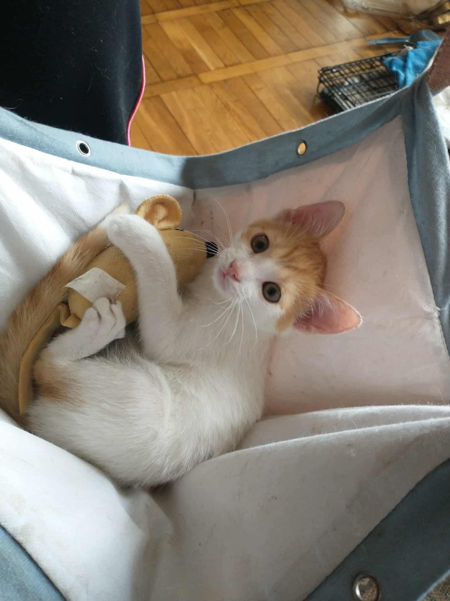 Mini urodziła się we wrześniu 2013. Miała bardzo ciężki start; urodziła się w miejscu, gdzie koty głodują, chorują i umierają. Do fundacji trafiła bardzo wychudzona, niewyrośnięta, z podrudziałym futerkiem i kocim katarem. Chociaż wyleczyła się szybko, to dojście do pełnej formy i przemiana w ładną i wesołą kotkę zajęła jej kilka miesięcy. Zawsze już będzie drobną kotką. Mini jest sympatyczną i pełną energii pieszczoszką. Bardzo dobrze funkcjonuje w gromadce kotów, powinna zamieszkać z innym kotem, spokojnym i niedominującym.