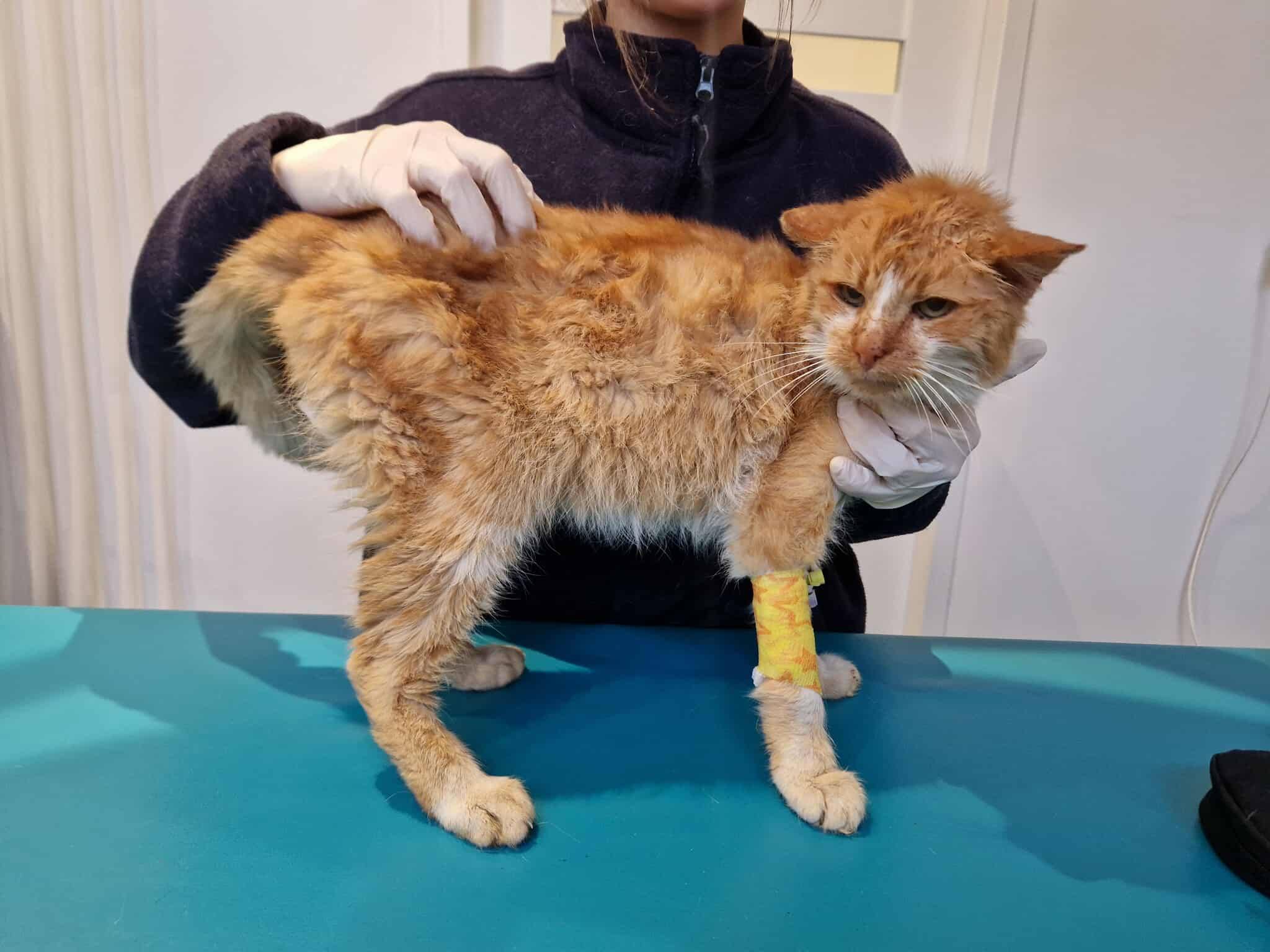 Z nogą nic sensownego się już nie zrobi, można uciąć, ale nie trzeba, bo kot nauczył się z nią chodzić. Ile stresu i bólu musiało go to kosztować, nawet nie chcemy myśleć.