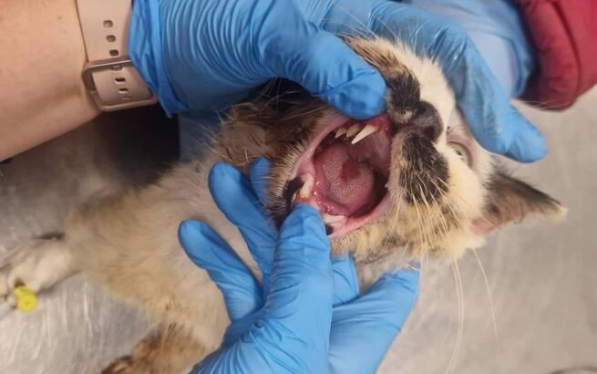 Doktor musiał ustabilizować staw żuchwowo – skroniowy za pomocą drutu, co uniemożliwia otwarcie paszczy i jedzenie. Kocurkowi została tylko niewielka przestrzeń na karmienie strzykawką.