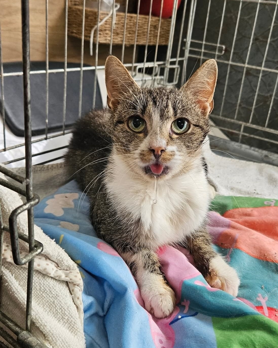 Lista dolegliwości jest długa. Kotka miała usuwane zęby (te które jej zostały, bardzo krwawiła po zabiegu, ale na szczęście szybko to ustało), była niedożywiona, miała biegunkę, masę pasożytów wewnętrznych i zewnętrznych, test na giardię pokazał delikatny plusik. Na szczęście testy FIV/FeLV wyszły ujemnie, a wyniki krwi jak na jej stan są całkiem niezłe.